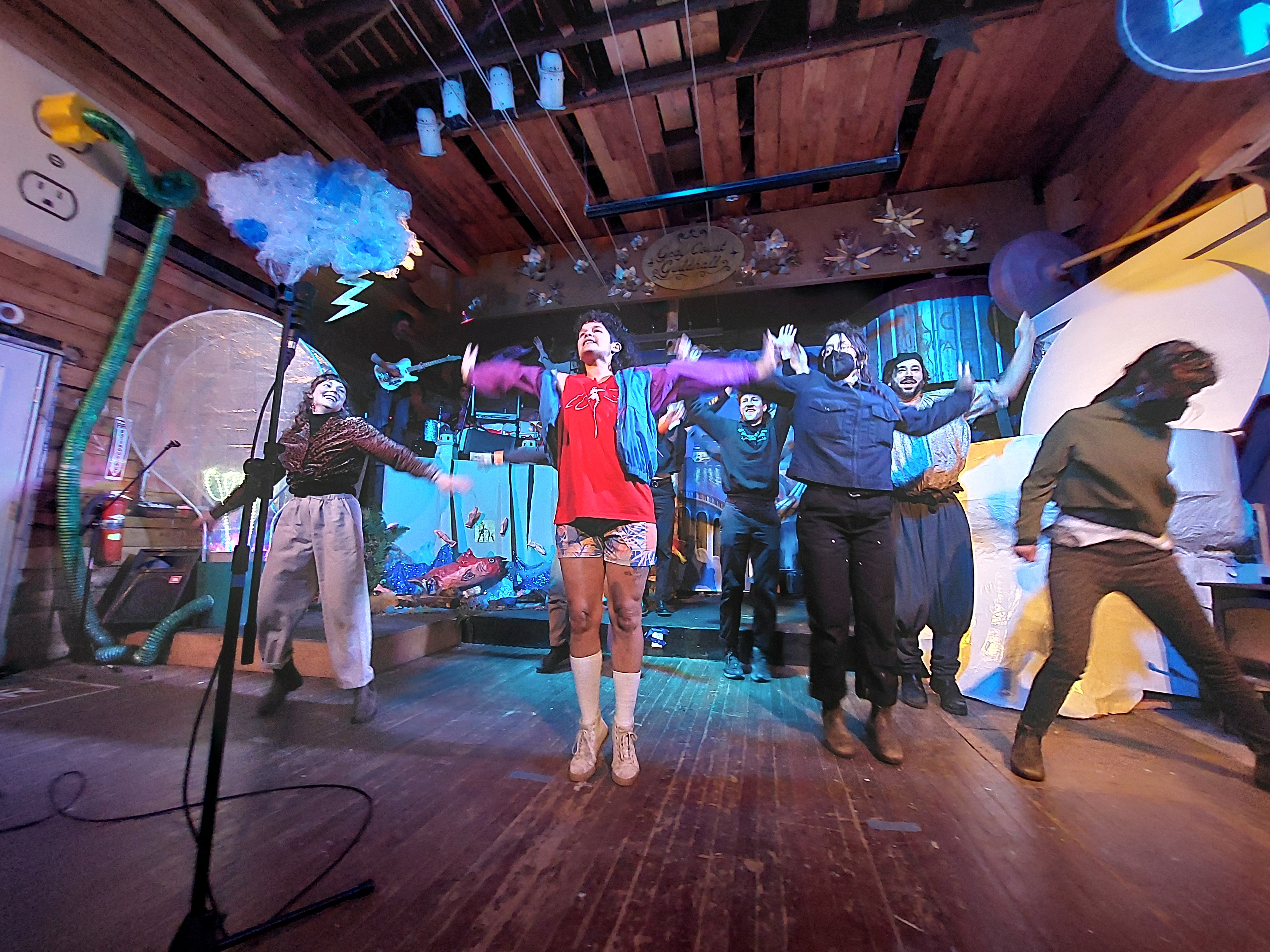 We have a house sound system and basic theater lighting, and can seat around 100 people at maximum capacity.
